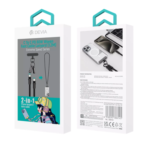 Description de Produit : Câble Collier 2-en-1 Type-C/Type-C - Devia Extreme Speed Series - 60W 1.2M - Noir