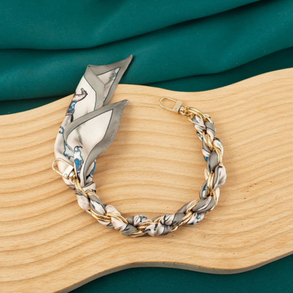 Collier de Coque de Téléphone avec Foulard en Soie Grise, Fermoir Doré - 32 CM