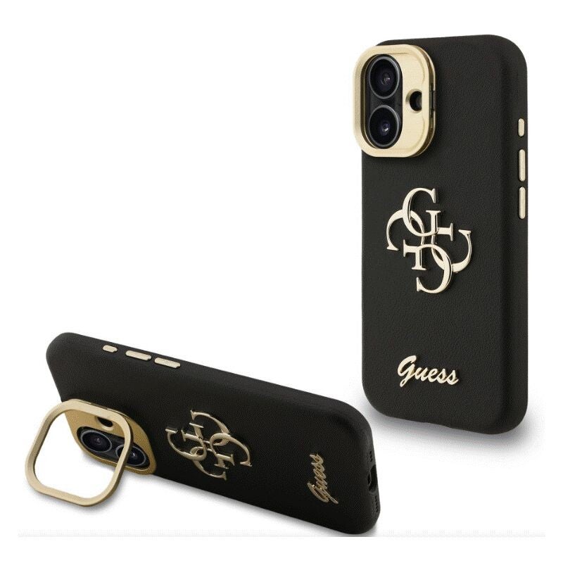 Coque Guess PU grainé 4G cadre photo pour iPhone 16 Pro, noir