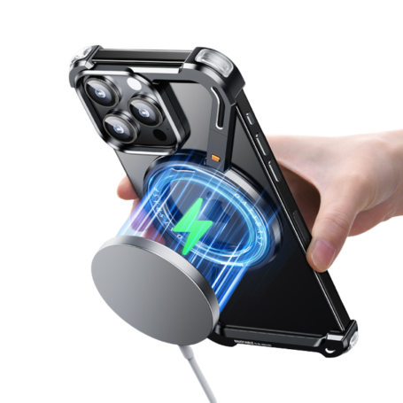 Coque de Protection iPhone sans bordure avec support rotatif, magnétique MagSafe et cadre métal anti-choc